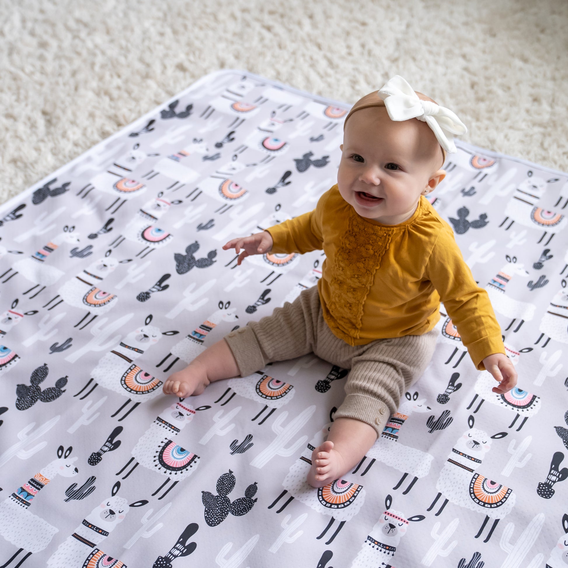 - ADORABLE WILDLIFE PRINT This versatile Splat Mat can later be used as a toddler play mat, creating a clean and safe space for your infant in the park or at the beach.