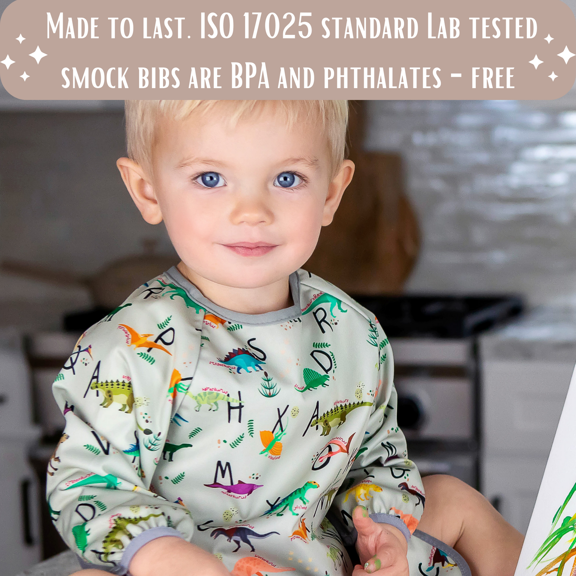 BABYBOET Long Sleeve Baby Bib Set 2PCS, Toddler Bib, Smock - Waterproof, Wipe Clean, Machine Washable with Food Catcher Pocket. 6-36Months