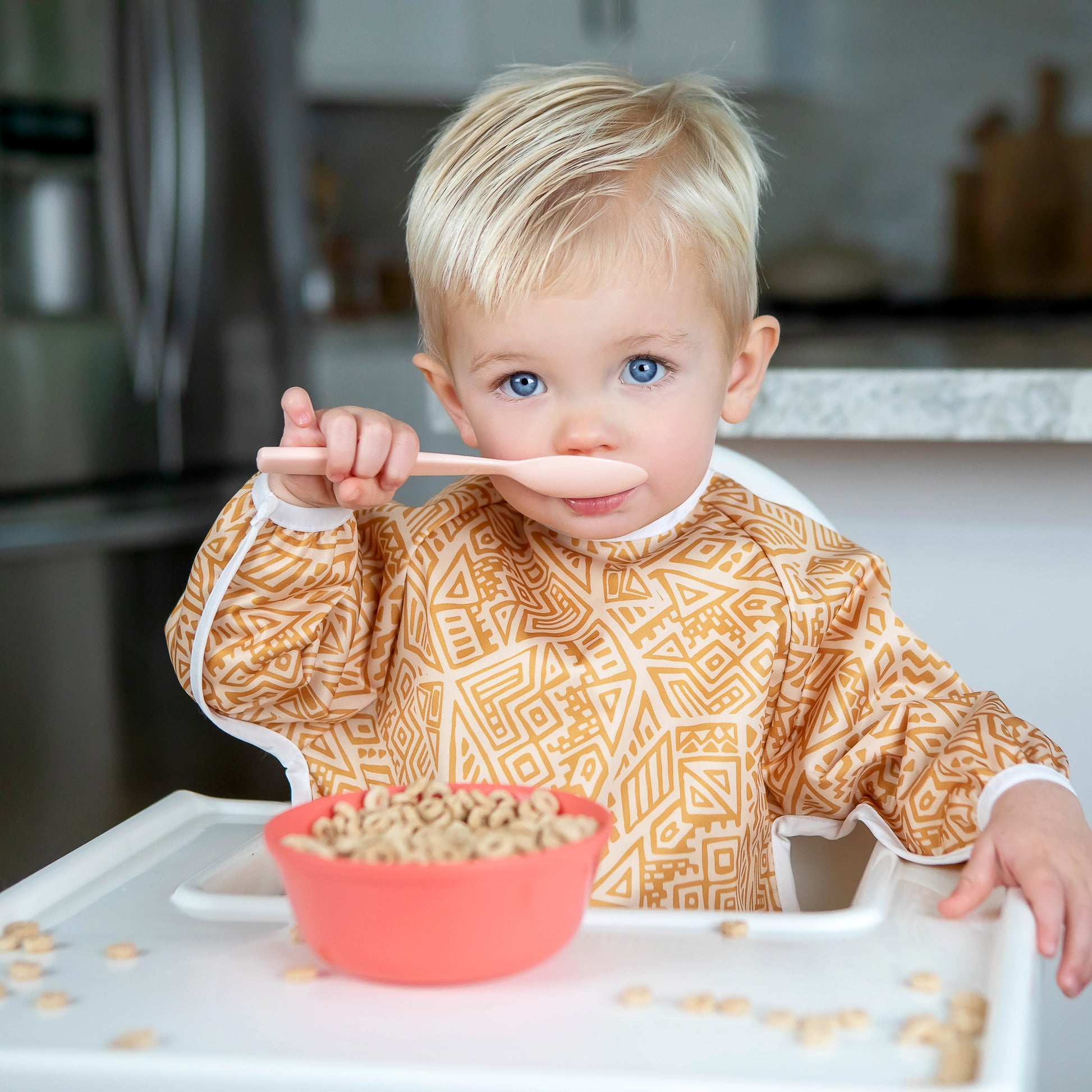 - MAKE MEALTIME HAPPY AND STRESS-FREE: With its double-layer waterproof design, you can put away your mop and revel in watching your tyke develop into a proficient and enthusiastic eater. Our baby bibs are the perfect accessory for eating, baby lead weaning, art and messy play.