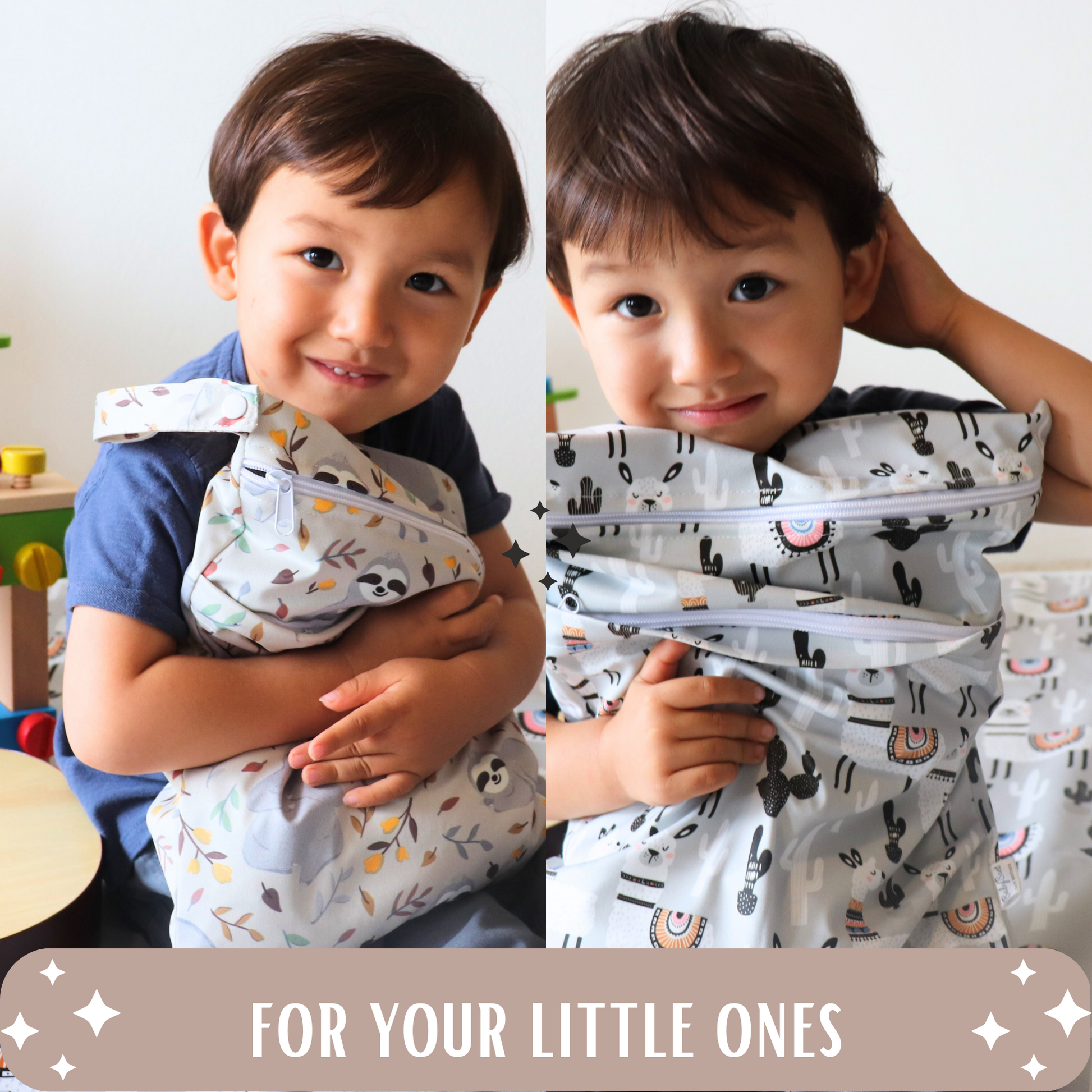 ✅VERSITILE, ECO-FREINLDY: SAY NO TO single-use plastic bags and Think green. our new generation reusable wet bags are eco-friendly and can be machine washed many times over. Think swimming classes, beach days, library visits, picnics, parties, daycare and so much more.